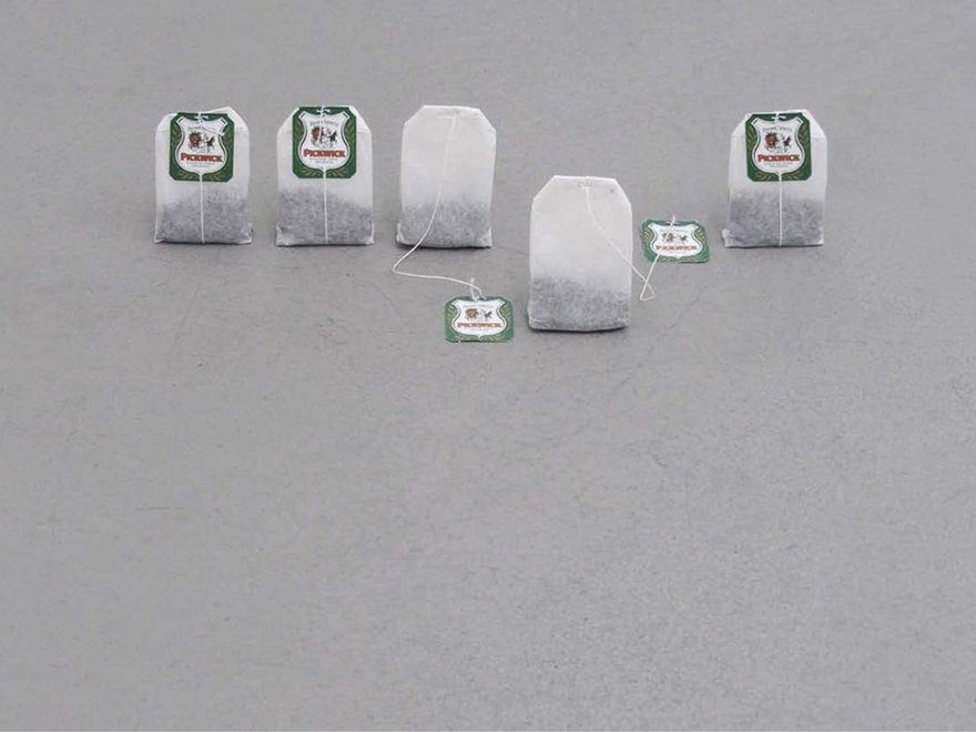 Mark Manders, - ( - / - / - / - / - ), 1998. Tea bags and offset print on paper, variable dimensions. Photo by Mark Manders.
